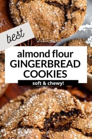 These almond flour gingerbread cookies are a healthier tank on a classic! They’re soft and chewy with crisp edges, spices like ginger, cinnamon and nutmeg and are so easy to make.