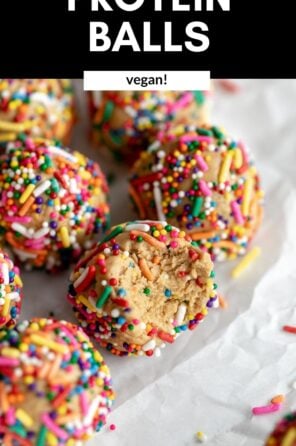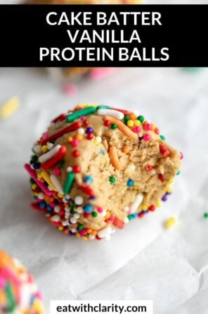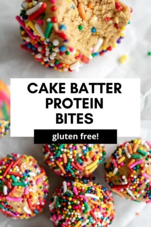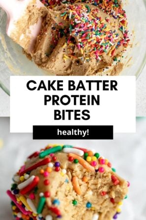 These cake batter protein balls are a healthy and easy snack or dessert made with simple, wholesome ingredients! They’re also completely refined sugar free, vegan and gluten free.