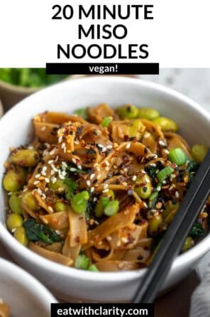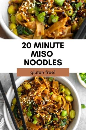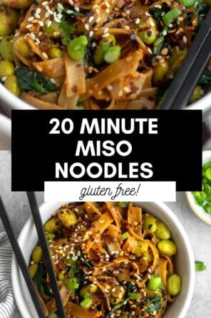 Whenever I don’t know what to make for dinner, I either reach for my ground beef taco bowls or some kind of Asian noodle dish. They’re so quick, easy and packed with flavor. These miso noodles are no exception! They come together in under 30 minutes, and are totally customizable based on what you have on hand!