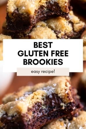 These gluten free brookies combine two of the best desserts- a layer of fudgy gluten free brownies topped with a layer of thick chocolate chip cookies. They’re a rich, indulgent dessert that will impress all of your friends.