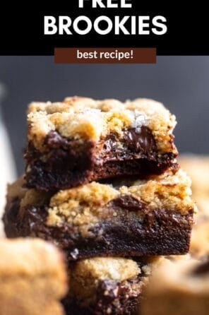 A slutty brownie is essentially a brookie but with the addition of oreos. Since Oreo makes a gluten free version, you can add 16 oreos to the top of the brownie layer before adding on the cookie layer. No other changes are needed! So it’ll be a cross between my gluten free oreo brownies but now with a layer of cookie on top!