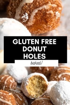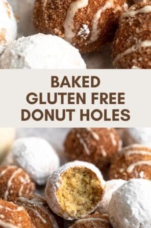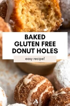 These gluten free donut holes are so easy to make, baked instead of fried and perfect for a late night sweet treat. Coat them in powdered sugar, cinnamon sugar or make them glazed!