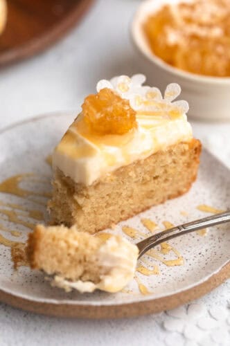 We already know I am cake obsessed, but oh my gosh this gluten free honey cake might just be one of my favorite recipes to date. It has a fluffy and tender honey vanilla cake with a touch of almond extract, then gets soaked in a honey butter glaze and finally finished with a whipped mascarpone frosting that I could eat straight with a spoon.