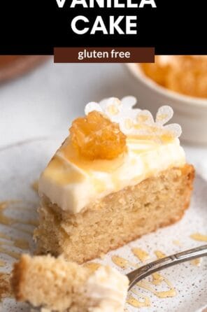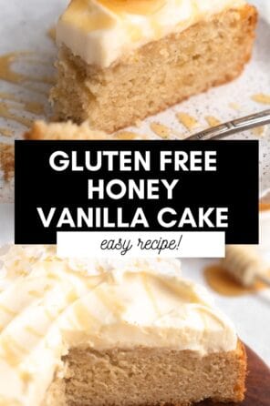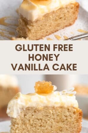 This recipe is perfect for an at home birthday or smaller celebration since it makes just one 8 inch cake. I love it with a drizzle of honey on top but you can also top it with fresh berries in the summer for a different twist! If you love this recipe, try my gluten free vanilla cake next.
