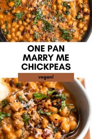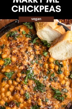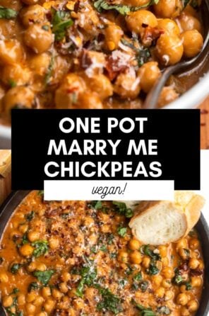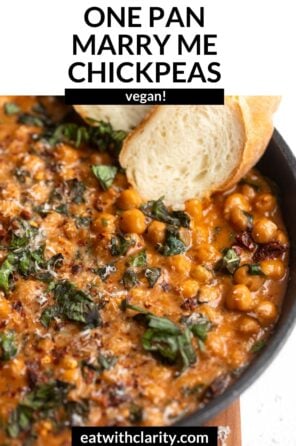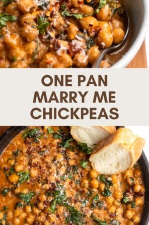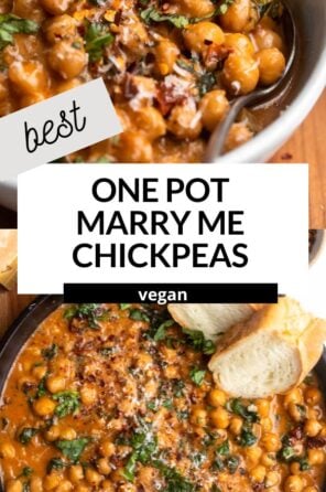 These one pot marry me chickpeas are the ultimate 30 minute weeknight dinner. This recipe is vegetarian but vegan friendly and made with pantry staple ingredients. A plant-based take on the viral marry me chicken!